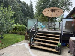 Welcome to a big beautiful updated home with LARGE SUITE backing on to greenspace. Almost 3500 sf of living space with an awesome open floor plan. Lots of light with the skylights Your new home has 3 bdrms + 2 bathrooms on the main with a wonderful open floor plan & amazing updates to the kitchen, flooring, bathrooms. Your basement is versatile offering either bedrooms, a den, bathroom for upstairs OR as a self-contained beautiful 2 bed + den, 2 bath suite. Extensive updates over the years include windows & skylights, central A/C & 70gal hot water tank, as well as appliances. RV parking, lots of extra parking, and walking distance to all levels of schools. Roughed in for a hot tub and has 40amp RV service. Beautiful deck space all around the home for entertaining and family get togethers.