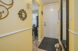 LOCATED in the highly sought-after CEDARBROOK VILLAGE, this charming ground-level, 1-storey townhome offers the perfect blend of convenience and comfort. Situated in a prime location close to shopping, dining, hospital and transit. Originally the show home, it features 2 bedrooms, 2 bathrooms, and a bright white kitchen with updated countertops, newer laminate flooring. The living room has a cozy gas fireplace, and the front and back patios offer a wonderful outdoor space, with the back patio overlooking a private common yard. Located in a well-maintained complex, it's perfect for those seeking a stair-free, low maintenance lifestyle. 55 plus complex. Replaced hot water heater 2023, new pressure regulating valve June 2024,New roofs being done. This home is ready to move into.
