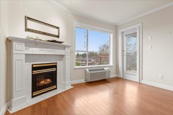 THE WEDGEWOOD - Bright top floor west-facing 2-bedroom, 2-bathroom home in a friendly 55+ community offers 1,118 sq ft of easy, single-level living. This unit features a custom walk in shower in the ensuite, air conditioning, skylight, motorized blinds, and a smart, functional layout. Access your balcony from either bedroom or your living room, use the retractable screens for added air flow. Tucked away in a quiet, well-kept building just minutes from shopping, transit, and everyday conveniences. With electricity, heat, and hot water included in the strata fee, it’s truly worry-free living. Double elevators provide extra convenience and bonus storage room for your Christmas decorations.