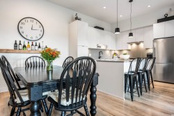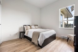 Welcome to Upper Montrose in the heart of downtown Abbotsford! This top-floor 3 bed + den, 2 bath home offers 1,225 sqft of open-concept living with stunning northern views. Features include A/C in the living room and primary bedroom, a gourmet kitchen with quartz counters, stainless appliances, large island, and gas BBQ hookup on the patio. The spacious primary suite boasts walk-through closets and a double-sink ensuite. The versatile den is perfect for a nursery, office, or extra storage. Enjoy 2 parking stalls, family-friendly amenities, and proximity to schools, shops, cafes, gyms, Old Yale Brewing, and the new transit loop.