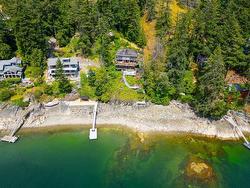 This waterfront home sits overlooking Deep Bay - one of Bowen's most popular locations. 0.67 acres, with steps down to the water's edge below, places to put your paddle board, and plenty of privacy. Inside features an open plan on the main, with wood paneling throughout for a comfy and cozy feeling centered around a beautiful fireplace. Upstairs consists of 3 bedrooms. Soak up all day sun from multiple levels of wrap-around decks, and whale-watch from the comfort of your own home. Below features an covered yet open air area for woodworking and more. Moments away from Snug Cove and the ferry.