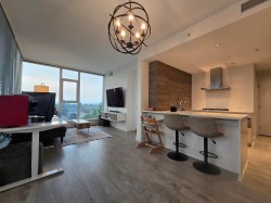 Welcome to this stunning northwest corner unit at Kings Crossing II by Cressey, offering breathtaking views of the city skyline and mountains. The home features Cressey’s signature open kitchen with integrated appliances and quartz counters, plus central air conditioning for year-round comfort which is controlled by the latest Google Nest Learning Thermostat. The large balcony is perfect for outdoor living, while the building's amenities include a concierge available from 8 AM to 11 PM, a state-of-the-art gym, indoor basketball and squash courts, and steam/sauna rooms. This complex includes a Pricemart and a large commercial gym right downstairs for ultimate convenience. Bonus: the unit comes with one of the building's larger parking spaces and a storage locker.