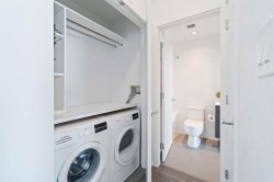 Come home to this pristine and ultra modern one bedroom residence in the Amazing Brentwood 3. Extremely smart use of space that features 540 s.f. of sophisticated living area with views to the South. This home hits all the marks - sleek kitchen with integrated cabinetry and Bosch appliances, primary bedroom with walk-through closet that conveniently leads to a full 4 piece bath, insuite laundry closet with thoughtful room for hanging clothes to dry, generous 154 s.f. balcony, underground parking and separate storage locker. Amenities include 12,000 s.f. of patio space with gardens, outdoor fireplaces, children's playground, state of the art gym, yoga and meditation rooms, guest suite, concierge services and so much more. Exceptional location - everything at your fingertips.