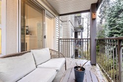 WALK OUT YOUR DOOR to Shopping of All Levels, Lougheed Mall, Walmart & a short walk to skytrain/bus loop, Hwy access & closeby SFU University! BEAUTIFUL 2 BEDROOM & DEN, 2 BATHROOMS with a Great Unique layout featuring a Huge Primary Bedroom with flex/den space overlooking private mature greenery! Newer appliances & laminate flooring, insuite laundry, storage locker & parking.Step out your door to the upcoming Future State of the Art Facility Cameron Community Centre w/Pool,Gym,Library & more! Location offers Convenience At Its Best!