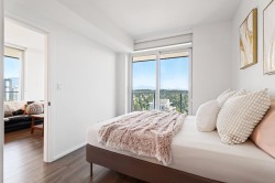 This beautiful northeast corner unit in the desirable City of Lougheed offers stunning views from every angle. Enjoy breathtaking views of the Fraser River, golf course, and mountains, all without any obstructions. The home features three bedrooms and two full bathrooms. The well-designed layout includes a kitchen with Bosch appliances, a large center island, and a spacious living room with a thoughtful layout that allows you to fully enjoy the stunning scenery. The large balcony is perfect for entertaining family and friends. Conveniently located within a shopping mall, you'll have easy access to shops, banking, restaurants, and cafes. Plus, the SkyTrain station is just steps away, offering an unbeatable combination of luxury living and convenience.