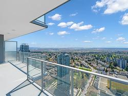 Gold House North Tower by Rize Alliance located in the heart of Metrotown in Burnaby. This high level 2 beds 2 full baths unit faces Southwest with spectacular mountain and city views. Large wrap around balcony for year round entertainment. Functional layout with 9' ceilings throughout. High-end modern kitchen equipped with Armony soft-close cabinetry and integrated Bosch appliances. Central A/C. Over 30,000 SF of Amenities including a Fitness Centre, Party & Study Room, Social Lounges, BBQ area and 24 hour Concierge. Pets & Rental allowed. Located just steps away from Skytrain Station, Station Square, Metrotown Mall, Crystal Mall and Bus loop, restaurants, banks, Bonsor Community Centre & much more.
