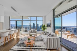 Welcome to Triomphe! Experience breathtaking 260-degree views of the water, city, and mountains from this stunning penthouse offering 2 bed +den & 2 bath.Delight in the expansive 468 sqft of balcony space, perfect for entertaining against a backdrop of picturesque scenery.This exquisite residence boasts 9'3" ceilings & floor-to-ceiling windows that create an airy ambiance. The chef’s kitchen features a breakfast bar & stainless steel Bosch appliances. Both bedrooms enjoy spectacular views with access to the balcony, while the master suite includes a luxurious 5 piece ensuite equipped with his & her sinks and a relaxing soaker tub.Take advantage of exceptional amenities, including a 13,000 sq ft outdoor pool,hot tub, fitness center, yoga room,.. Plus, 2 large side by side Parking & Storage.