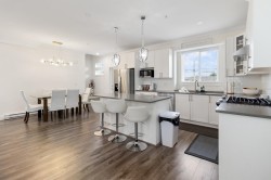 Open-house- Nov. 29th Sat. 12-2 pm. Stop renting and start owning! This stylish, like-new townhome offers a smart square layout with 3 spacious bedrooms, a versatile rec room, and 3 bathrooms, plus convenient street-level entry and rear access. Enjoy bright open-concept living with a modern kitchen featuring granite countertops, sleek cabinetry, and stainless-steel appliances, along with a balcony perfect for coffee, BBQs, and entertaining. The primary bedroom includes a walk-in closet and private ensuite, and two generous bedrooms complete the upper level. A fully fenced backyard provides great outdoor space, and this boutique community of only four homes on a 10,500 sq. ft. lot offers privacy, a self-managed strata, and low fees. — with no GST!