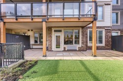 This two bedroom plus den residence sits in the sought after, upscale community of Englewood Courtyard. No detail was overlooked, featuring quartz countertops, stainless steel appliances, and a floor to ceiling stone fireplace in the living room. A standout feature of this ground level home is the spacious, turfed and fenced yard, offering seamless indoor/outdoor living with a patio and abundant natural light. Two storage lockers are included, one across the hall and another located in front of the underground parking stall. One small dog up to 18" is permitted, or a cat. The lease fee is $151.14 per month and HOA fees are $397.58 monthly. The building includes a car wash, woodworking shop, and a highly active community clubhouse for resident enjoyment. Come see it for yourself. Today!!!