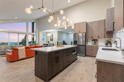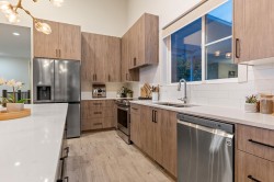 GORGEOUS MODERN basement-entry home featuring 3 bedrooms up PLUS a 1-bedroom DAYLIGHT suite with den! Enjoy a FABULOUS OPEN living space highlighted by a sleek modern kitchen with large island, SS appliances, chic lighting, gas fireplace, vaulted ceilings, and a MASSIVE window + front patio showcasing BREATHTAKING MOUNTAIN & VALLEY VIEWS! The primary suite offers another huge view window, TONS of natural light, a generous W.I.C., and a 4pc ensuite with dual sinks! Downstairs includes a bright 1 bed suite with separate entry and laundry! Additional perks: 20x20 covered vinyl deck, PRIVATE low-maintenance fenced yard, ULTRA-deep garage (perfect for trucks), and side RV parking! This STUNNING home checks every box — view it today and fall in love!
