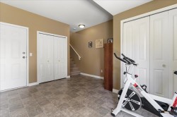 TOWNHOME WITH UNBEATABLE PARKING! This large townhome with sought-after road frontage, and one of the best spots in the complex. The two car garage is paired with an extra long & double wide driveway. Nearly 2,000 sq. ft. of living space with 3 bedrooms upstairs, a large rec room below, and potential to convert to 5 bedrooms. Features include central A/C, cozy gas fireplace in the living room, central vacuum, Breakfast bar, a full pantry, and gas BBQ hookup on the covered patio. Fully fenced backyard with privacy and outdoor space. Located in desirable area of Promontory, walking distance to the amazing Jinkerson Park and trails plus with easy access to Hwy 1 via Prest Road. Pet-friendly complex (up to 3 pets allowed).This is the one you’ve been waiting for! Low Monthly Strata fees