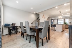 This END Unit townhome boasts over 1735sq ft spread out over 3 levels. Features a DOUBLE garage with visitor spot right next to it, park up to 4 vehicles. A fenced backyard is a great space for your furry friends. The lower level includes a large Rec/Media room or can be used as another bedroom with two pc washroom. The Main offers an open floor plan with large kitchen to Dining room and a warm and welcoming Living room with Electric fireplace for cold days and a slider opening up to the large Sundeck that's perfect for BBQ weather. Upstairs you find the Primary with large walk in closet and spa like Ensuite Bathroom, the main bathroom and Laundry with two good sized rooms. High ceilings throughout and located close to Hwy 1, shopping, and schools.