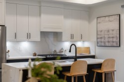 ***NOVEMBER DEVELOPER INCENTIVE AVAILABLE - CALL FOR DETAILS *** Move-in ready! Brand-new 3 Bed, 2.5 Bath townhome in Le Bleu - a boutique development in historic Maillardville. Bright and airy with 10' ceilings on the main level and 9' ceilings upstairs. Gourmet kitchen with shaker-style cabinetry, gas range, waterfall quartz countertops, and premium finishes. Comfort year-round with central A/C, high efficiency gas furnace, HRV system, and on-demand hot water. Enjoy the morning sun on your east-facing balcony and unwind in your private west-facing fenced patio. Quality craftsmanship and modern design. Two car attached car port with EV charging. Available for immediate occupancy.