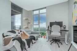 A rare opportunity to own a pristine & immaculately maintained view suite offering panoramic city & mountain views. A bright & airy feel. 2 Beds, 1 bath. The largest parking space you'll ever see; near the entry door + storage locker. Luxurious & modern finishes featuring newly updated light oak colored flooring. SS appliances, undermount mood lighting & sleek cabinetry. Building amenities: gym, lounge & outdoor BBQ. Conveniently located next to shopping, transit, entertainment & minutes to SFU. Walk to Skytrain & Lougheed Town Centre. EV Charging Stations. Secure visitor parking. Not to be missed, a terrific investment or peaceful place to call home.