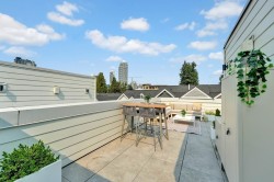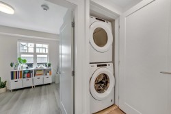 Discover this beautiful 2-bedroom, 2-bathroom townhome featuring a massive rooftop terrace and a fenced front patio perfect for entertaining or relaxing outdoors. The open-concept layout is elevated by contemporary designs and thoughtful upgrades, including the large kitchen with quartz countertops and backsplash and Fisher & Paykel appliances, Air Conditioning, sleek laminate flooring throughout, custom closet organizers, and smart home features for modern living. Ideally located just steps from a 55,000 sq. ft. YMCA, retail plazas, and everyday conveniences. This home comes with 2 underground parking stalls with EV charger and a secure storage locker. Open house 2-4pm on Sun, Dec 21.