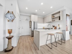 Penthouse living with style. Welcome to your private sanctuary in the sky! This stunning 2 bedroom 2 bath penthouse condo boasts 774 square feet of thoughtfully designed living space, soaring high ceilings, and an abundance of natural light that pours in through expansive windows. Perched on the top floor, this home offers a bright and airy open-concept layout, perfect for both relaxing and entertaining. The spacious living and dining area seamlessly connects to a sleek, modern kitchen,creating a natural flow throughout. Tall ceilings amplify the sense of space, while stylish finishes provide a contemporary yet comfortable ambiance. The primary suite features ample closet space and a private ensuite, while the second bedroom offers flexibility. EV charging accessible, close to skytrain.