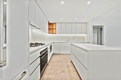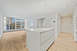 Brand new SOUTH-facing 2 BDRM corner home at Smith & Farrow by Boffo. Enjoy abundant natural light and a spacious 233 sqft patio with gas hookup. Features include A/C with smart thermostat, choice of designer dining table or 6' quartz island, integrated Fisher & Paykel/Bosch appliances, 5-burner gas cooktop, French door fridge, and custom pantry wall. Primary BDRM offers built-in wardrobe, heated ensuite floors, frameless glass shower, and medicine cabinets. Second bath with soaker tub, full-size laundry. Resort-style amenities: rooftop lounge, pool, hot tub, steam rooms & gym. 1parking + storage. Move-in ready! OPEN HOUSE Nov 1 2-4PM