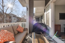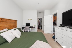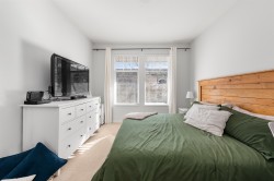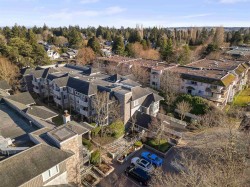 Welcome to the penthouse home in Heron Cove at The Pillars! This top-floor, corner unit spans 1078sqft, offering open concept living with a desirable floor plan with bedrooms at opposite ends. Complemented by 9 ft. ceilings that enhance the spacious feel. Sunlight floods the living room through large windows with a cozy gas fireplace. Step out onto the south-facing deck for sunbathing and BBQs. The kitchen is equipped with granite countertops, stainless steel appliances, and a gas stove. The large master bedroom features a walk-in closet and a 4-piece ensuite with soaker tub. A full-sized washer and dryer are housed in the laundry room, which also offers additional storage. This home comes with 2 side by side parking stalls and storage locker. Bonus guest suite for visitors! Come see!!