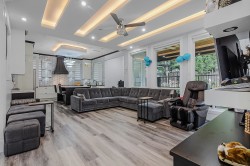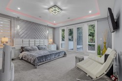 Experience luxury living in the prestigious Sunshine Hills of Delta with this new home situated on a massive 9,000+ sq ft lot, with 70 ft wide frontage offering plenty of driveway parking. The main floor has an elegant open-concept design with a bright living room, a spacious family room, a large chef's kitchen with a designer range hood, and a separate prep kitchen. Additional features include a mudroom, a stylish bar area, a steam fireplace, and a bedroom with its own ensuite-perfect and office room. Large windows, sliding glass doors, and open-riser stairs create a grand look thought out. Upstairs offers 4 bedrooms, each with walk-in closets and private ensuites, along with a laundry room. An elevator connects all 3 Floors. Basement has 2 beds legal suite, theatre room, and guest suit.