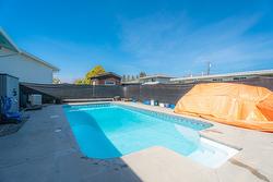 Welcome to this beautifully updated home featuring 3 bedrooms plus a den that can easily serve as a fourth bedroom, along with 3 bathrooms. Numerous upgrades add to its appeal, including a new roof (2022) and a incredible heated saltwater pool complete with a new variable pump and solar blanket —perfect for relaxing or entertaining. The bright and airy living room is highlighted by a stunning new floor-to-ceiling window (2025), while new kitchen window and updated appliances bring a fresh feel to the heart of the home. The main bathroom and walk-in closet were remodelled in 2025, offering a modern and functional touch. Major systems have been taken care of, with a new hot water tank, furnace, and AC unit all installed in 2020. Additional features include a new front and back door (2025) and newly installed carport converted to a garage (2020). This move-in-ready home blends comfort, style, and thoughtful upgrades throughout. All measurements are approximate and should be verified by the Buyer if deemed important. Call to view today!