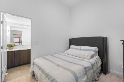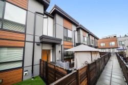 Welcome to this very clean and very well-kept 3 bed and 2.5 bath townhouse in The Terraces! The main floor offers an open-concept living room, a kitchen with a large island with a quartz countertop, and a dining area, which leads to a patio with turf. The upper floor has a decent-sized primary bedroom with its own ensuite and two additional bedrooms and a family bathroom. Additional features include central AC and hot water on demand. This centrally located complex is just a few minutes' walk to shopping, restaurants, recreation, parks, and the future new Skytrain station.Bonus EV charger, Updated Washer/Dryer, Hoodfan and hot water. Move in ready!