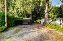 Looking for ultimate privacy in Brookswood for under a million? This charming 2-bed, 2-bath home is nestled among mature evergreens and backs onto a greenbelt with a peaceful creek. Features include hardwood floors, an updated kitchen, skylights, new hot water tank, new furnace, metal roof, fresh exterior paint, a redone crawl space, detached carport, and lots of parking. Enjoy a large west-facing deck—newly rebuilt along with the retaining wall—perfect for relaxing with full afternoon sun. A rare, private retreat close to all amenities.
