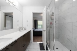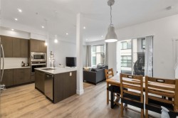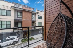 Welcome to Boulevard in Willoughby! This bright and modern 2 bedroom, 2.5 bath townhome is designed for both style and comfort. The open main floor features 10’ ceilings, oversized windows, and a chef-inspired kitchen with quartz counters, gas range, and an oversized island perfect for gatherings. Upstairs offers two generous bedrooms, including a primary with walk-in closet and ensuite. The showpiece is your private rooftop patio—ideal for BBQs, morning coffee, or relaxing evenings under the stars. Enjoy the convenience of a rare side-by-side double garage plus your own dedicated extra parking stall. Located close to schools, shops, parks, and transit with quick access to Hwy 1,this move-in ready home has it all!