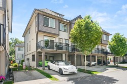 EVERLY GREEN – The best unit in the complex! This bright, end-unit townhome boasts the highest rooftop with stunning mountain and forest views. One of only three units with 3 parking spots—garage, carport & driveway. The private rooftop patio is a true oasis: sunny all day and perfect for sunbathing, dining, BBQs (gas hookup), relaxing by the fire, or adding a canopy for year-round use. Enjoy a second patio off the kitchen and a sunny front yard with new grass. Surrounded on 3 sides by protected greenbelt, with a playground at your doorstep and Yorkson Park just steps away. Walk to schools, close to HWY 1 & Carvolth. Bonus den, epoxy garage floors, gas range—this one has it all!