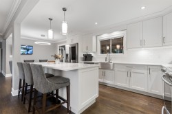CURB APPEAL THAT WOWS! Welcome to your new home, a fully renovated gem on a serene no-thru road. This remodeled home boasts a stamped concrete driveway with Illuminated lighting and a lush app-controlled irrigated yard. Enjoy evening west facing farm sunsets. Inside, find Pravada engineered hardwood & vinyl plank floors. 1-bedroom basement suite, with its own laundry. Unwind in the primary bathrooms jetted master bath, new plumbing & electrical throughout the home, A/C for summer comfort. 20x20 Detached garage featuring epoxy floors, EV-ready and a heat pump. With smart tech—Nest entry, surveillance, and automated lighting this property blends luxury and functionality. RV parking, new septic field(2025), and nearby walking trails complete the package. Book your private showing today!