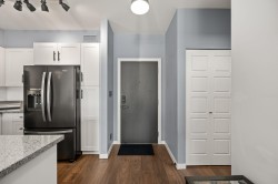 TOP FLOOR, VAULTED CEILINGS! Beautifully bright and sunny south exposure! Downsizer alert! This is the unit that you've been waiting for! Downsize in safety and comfort in this 2BDRM 2 BATH condo, with one occupant needing to be 55+ in age. Up to 13'ft vaulted ceilings! White kitchen cabinetry, S/S appliance package incl gas stove, granite counters. Heated ensuite tile floor in the master bath. 2nd Bdrm with cheater ensuite/main bath. Updated laminate floors and newer carpet in bdrm’s. California shutters. Updated paint and lighting throughout. BONUS storage locker on the same floor and 2 side by side parking stalls. Secure bike storage, fitness room and clubhouse included!NEW Heatpump offering A/C!