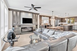 Welcome to *The Brooks* by Apex Custom Homes—nearly 2,000 sq. ft. of luxury living beside Routley Park! This spacious townhome features 3 beds, 4 bath, and a large rec room easily converted into a 4th bedroom with full bath. Enjoy radiant in-floor heating, on-demand hot water, Low-E windows, and wide-plank laminate floors. The chef-inspired kitchen boasts quartz counters, stainless steel appliances, gas range, extensive cabinetry, large island, and a feature wall with built-ins and wine rack. Elegant finishes include crown moulding, California-style closets, designer blinds, and glass-enclosed showers. Entertain on your covered patios with a gas BBQ hookup, and appreciate side-by-side garage parking. Meticulous this home blends comfort, efficiency and style in one exceptional package !