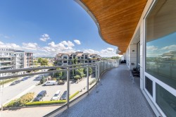 Luxurious sub-penthouse at Legacy On Park Avenue! This stunning 54’ wide home features floor-to-ceiling windows showcasing beautiful mountain views and a 331 sq. ft. deck spanning the entire width. Unique curved architecture, durable aluminum & tile exterior, and mass timber low-carbon construction ensure timeless quality. Features 3 BEDROOMS + DEN with a walk-in closet (can be used as a 4th bedroom), ducted heating & air conditioning, Fisher & Paykel built-in appliances, Caesarstone countertops, and 3/4” oak hardwood flooring throughout. Amenities include concierge, fitness centre, Grand Lounge, and EV charging. Includes 2 parking & 1 locker. Half a block to shopping and community centre, and only 8-minute walk to the future SkyTrain station.