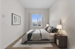 Welcome to VESTA BUILT South Village Condos with 2 PARKING SPOTS!! This stylish & functional floorplan boasts 9"ceilings, a SPACIOUS living & dining room with expansive windows for loads of natural light. OVERLOOKS Cascade Mtns & watercourse below (extra privacy). Entertain in your modern kitchen with ++ storage, generous sized island, soft-close cabinetry, under-cabinet lighting, S/S appliances inc. 5-burner GAS cooktop, quartz counters & contemp backsplash. Primary bedroom w walk-in closet & a 2-sink vanity ensuite. BIGGEST CORNER, NE facing balcony where you get MOUNTAIN VIEWS over morning coffee. AC, EV capable parking & pet friendly! Steps from NEW Josette Dundurand Elementary, Langley Events Centre, Carvolth Bus Exchange, 200 St transit & easy access to Hwy 1.