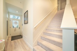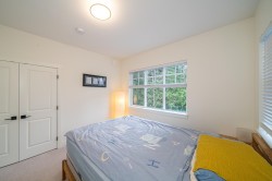 This well-designed corner unit townhome at NEWBURY offers two levels of living space with a layout that truly feels like a single-family home. The main floor features 10-foot ceilings, while the second level offers 9-foot ceilings throughout, creating a bright and open atmosphere. All bedrooms are generously sized with highly functional layouts. Enjoy excellent privacy, with the front of the home facing a landscaped garden and community mailbox area, and the rear backing onto a large detached single-family home set well away. A walk-out main floor patio extends the living space outdoors, while the spacious upper-level loft provides flexibility for a home office or additional living area. Ample storage throughout and a side-by-side double garage complete this comfortable and modern home.
