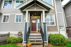 Ten yr old corner unit non-strata row home at “Cliffstone” by Foxridge Homes. Flat backyard leads to double detached garage off lane. In meticulous condition w/open-concept main flr, 9ft ceilings, laminate floors, elec F/P w/window bench, large den/flex, 2pc bath & A/C. Modern kitchen w/lg island, S/S appl incl gas range, quartz counters & pantry w/direct walk-out to cedar deck & fully fenced yard, perfect for entertaining. Up offers 4 bdrms, 2 baths & laundry. Primary overlooks backyard w/W.I.C. & spa-like 5pc ensuite w/dbl vanity, sep shower & soaker tub. Full bsmt awaits your ideas w/rough-in plumbing & windows. No strata fees or restrictions, near Kanaka, SRT & Meadowridge schools, shopping & transit!