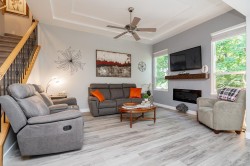 Woodridge in Cottonwood. One of the largest townhomes on the market with 3120 Sq ft of living space backing onto a forested creek! Entering on the main with foyer with house like vaulted ceilings, with a massive open concept kitchen with an island & bar seating, a separate living & dining room. Two primary bedrooms, one being on the main & one upstairs both with en suites! Upstairs ensuite consist of two large separate vanities, a separate jacuzzi tub & standup shower. Downstairs consists of a kitchenette, massive living room w/ a gas fireplace, a bedroom & den and two huge storage area’s. Great size & extremely private balcony off of the kitchen & deck off of the downstairs living. Double car garage w/ 2 driveway spots! Air conditioning through out!
