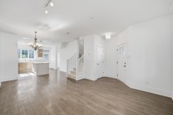 Introducing Village Green, Maple Ridge’s two-level townhomes. The featured A great floorplan of thoughtfully designed living space that feels like a single-family home. The modern open layout includes a gourmet kitchen with rich bi-colour cabinetry, quartz countertops, stainless steel appliances, and a convenient main-level powder room. Upstairs are three spacious bedrooms, including a luxurious ensuite with a large, frameless glass shower. Enjoy the comfort of watching the kids play in your safe, fenced yard or take a stroll to the 2,600 sq. ft. tree-lined community park at the heart of Village Green. Unrivalled location.