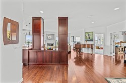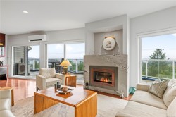 Perfectly located just minutes from downtown Nanaimo, you’ll enjoy quick access to Helijet, float planes, the Hullo ferry & all the city’s dining options. Unit 401 at 650 Prideaux St spans over 1,800 sqft of renovated living space, with an open-concept design that showcases spectacular ocean, harbour & city views from every angle. The kitchen, dining & living areas flow seamlessly together & two expansive decks extend your living space outdoors, where you can savour breathtaking sunrises & sunsets. The kitchen is equipped with extensive counter space, abundant cabinetry & thoughtful storage solutions. With 2 bedrooms + a den/3rd bdrm & 2 bathrooms, the layout offers both comfort & flexibility. The primary suite is generous in size with a beautifully appointed ensuite, while the 2nd bedroom includes custom cabinetry, a built-in office & a high-end Murphy bed for guests. Additional features include a ductless heat pump, a rare private garage with storage & an extra outdoor parking stall.