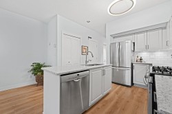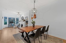 Unique 2-level townhome in a boutique English-style complex on a peaceful no-through street. This home stands out for its rare large backyard directly off the main level, superb walkability, functional layout and privacy. Inside you’ll find 9 ft ceilings, new flooring, and a bright family room with walkout access to a private patio and fenced yard, ideal for kids, pets, gardening, or morning coffee and evening wine. A cozy living room with gas fireplace and dedicated dining area add great usability. Upstairs are 2 bedrooms plus a skylit den perfect as an office, nursery, or 3rd room. Features include 2 secure underground parking stalls, front and lane access, and recent building repiping. No presentation of offers until December 17, 2025 at 4:00pm.