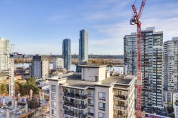 Welcome to the sub-penthouse level, 15th floor corner suite! This well-maintained, 2-bedroom, 2-bath residence offers sweeping Fraser River views from multiple vantage points. The intelligent 800 SF open plan includes a bonus work-from-home office nook. The bright suite features a spacious kitchen with granite counters, stainless steel appliances, and ample storage. Step onto your 61 SF balcony to enjoy the panorama of Downtown New West and the river. Enjoy excellent building amenities, including an onsite gym, a fantastic party room, and three secure boke rooms! Unbeatable location: steps to Douglas College, SkyTrain, the Quay, parks, and local dining. 1 parking and 1 locker. Rentals and pets allowed. Immediate possession available. Parking : P3 #119, Storage 111. Open House Sat/Sun 2-4pm