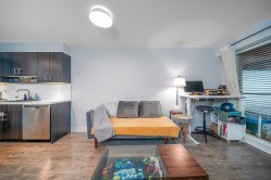 Dreaming of a condo with a massive, covered balcony & river views and oversized balcony-perfect for relaxing and BBQ! This lovely 1 bed/1bath condo is beautifully appointed with SS appliances, stone countertops, laminate floors, deep soaker tub, & a massive deck. Move in ready! Freshly painted. Open plan kitchen, dining, & living room adjoining the covered outdoor space. Includes 1 parking/1 locker & 1 solar panel, as a part of the New Westminster Community Solar Garden initiative. EV charging on-site & visitor parking. Walk to Skytrain/transit,shops, services, cafes, Quay & more. Pets & rentals allowed. Built in 2014 by Ledingham McAllister.