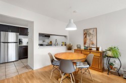 Welcome to Fraser Mews! A fantastic 2 bed, 2 level townhome on the quiet south side of the building. Enjoy your private entrance and sunny patio perfect for entertaining or gardening, with perennials on three sides. The main level features an open layout with laminate floors in the living and dining areas, a bright kitchen with tiled floors, newer appliances, and a spacious pantry. A versatile den/storage area is ideal for a home office. Upstairs are two generous bedrooms, both with access to a private upper patio, plus a newer stacking washer/dryer. UNBEATABLE LOCATION! Close to Queens Park, bus routes and the brand new t?m?sew?tx? Community Centre! BOOK YOUR PRIVATE SHOWING TODAY!!!