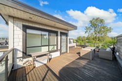 RIVERFRONT RETREAT! This bright and quiet 3-bed, 2.5-bath townhome (1,590 sq ft) in River’s Walk offers ideal indoor-outdoor living with a fenced yard on the riverfront greenway and a 356sq ft rooftop deck featuring a natural gas BBQ hook-up and river view. The main level boasts 9' ceilings, laminate hardwood floors, a gas fireplace, and stainless steel appliances. Upstairs, enjoy a king-sized primary retreat with 5-piece ensuite, two spacious bedrooms, and another full bath. Tandem garage plus driveway fits 3 vehicles. Quiet street near parks, schools, community centre, Q-to-Q ferry, and Queensborough Landing. Book your showing today!