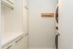 Located in the heart of New Westminster's Uptown area, in a Bosa built, well manage concrete building. Walking distance to shopping and sky train. This beautifully updated, open floor plan, 2 bedroom, 2 bath, plus den and separate laundry room home, features south west views of the Fraser River, engineered walnut floors, porcelain tile, wool carpets. The kitchen has granite counter tops, and large island with seating for four, Fisher & paykel, fridge, stove, hood fan and Miele dishwasher. Both stunning bathrooms have been beautifully renovated as well. There is one parking space and one large storage locker.