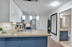 Move-in ready and beautifully updated 2 bedrooms and 2 baths top-floor condo in the heart of Port Coquitlam. Updated kitchen features modern cabinets, breakfast bar, granite counters and SS appliances. The dining and living areas open onto 2 covered balconies - perfect for year-round enjoyment. Bedrooms are thoughtfully situated on opposite sides of the living room for privacy, with the primary offering a walk-in closet and a nook for a home office. Enjoy updated laminate flooring throughout and a large laundry room with ample storage. The well-managed strata allows 2 pets and the building has a new roof. Ideally located on a quiet street, just steps from schools, Gates Park with its multiple sport fields & scenic Traboulay Trail, recreation center, shops, restaurants & West Coast Express.
