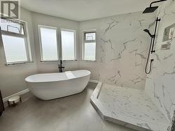Beautiful executive 5-bedroom, 2.5-bath home backing onto the 11th hole at Quesnel Golf Club! The stunning primary bdrm features a private sundeck & a luxurious ensuite with a standalone soaker tub, double vanity, and walk-in marble-tiled shower. Enjoy the comfort of in-floor heating throughout the home (including the triple bay garage), plus natural gas fireplaces in both the living and family rooms. A grand 17-ft ceiling, with curved staircase, greets you in the impressive entryway. The spacious oak kitchen includes an eating nook, complemented by a separate formal dining area. Additionally you will find lots of newer fixtures & in-ground sprinklers. There is also a covered patio in your landscaped backyard. All set on a 0.5-acre lot in one of Quesnel’s most desirable neighbourhoods. (id:27)