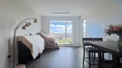 Experience Exquisite Living in Penthouse 518. Indulge in unparalleled luxury in this beautifully appointed 2-bedroom and den penthouse, featuring soaring high ceilings and sweeping city views. With 980 sq. ft. of open, elegant living space, the versatile den offers endless possibilities-ideal as a home office, third bedroom, playroom, or your dream walk-in closet. The one-of-a-kind oversized gourmet kitchen is a chef's dream, complete with high-end appliances, a gas range, and an expansive island perfect for cooking and entertaining. Residents of Berkeley House enjoy exceptional amenities, including a stylish clubhouse, lounge, fitness center, and a children's playground. Perfectly located near premier shopping, dining, and transit. Your dream south-facing home has finally arrived!