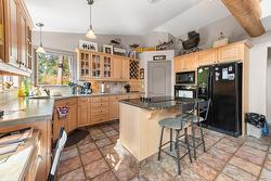 The main house features 3 bedrooms and 3 bathrooms, with in-floor heating throughout the entire first level, including the double car garage, and the second level with a wood burning stove to help keep the home warm and efficient year-round. The house is hard wired for sound in every room including upper and lower decks. A lifetime rubber roof ensures durability and peace of mind while a large deck that has been fitted with propane for BBQ, overlooking the lake offers the perfect place to relax, entertain, and enjoy the beauty of the surroundings. Additional exterior perks include underground sprinklers, a dedicated dog run with cold and hot water perfect for pet owners and a garden space and fruit trees for those who love to grow their own produce.