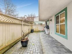 Spacious Ground Floor Apartment | 2 Bed 2 Bath | 1,463 Sq.Ft. | Originally Kept & Well-Maintained. This bright end unit overlooks a peaceful courtyard and offers two parking stalls. The Private Concept kitchen and breakfast area flow into a large living and dining space with a cozy gas fireplace and access to a covered patio—perfect for entertaining. The spacious primary bedroom features a walk-in closet, a luxurious ensuite with a soaker tub and shower, plus private patio access. Great location—close to shopping, transit, and Kwantlen University.