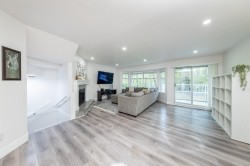 Rare find!!! Nearly 2,000 sq.ft. 3-level townhouse backing onto a tranquil greenbelt. The entry level opens to a fenced backyard and a large flex/rec room—ideal as a home office, gym, or 4th bedroom. Bright, airy main floor with a gas fireplace and a sunny sundeck facing trees for exceptional privacy. Fully renovated kitchen, refreshed bedrooms, and new light fixtures. Upstairs, the primary retreat offers dual sinks, a soaker tub, and a separate shower. $100K+ in upgrades: laminate flooring throughout; ~4-year-new appliances, furnace, and boiler. Ample in-home storage. Walk to Kennedy Trail Elementary; minutes to shopping, restaurants, theatres, and transit, with quick access to major routes. A refined blend of space, privacy, and convenience—Move-in Ready. OH CANCELED THIS WEEKEND